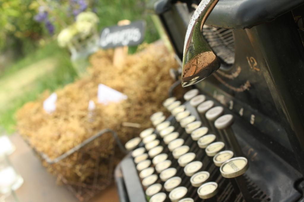 Estan llenas de detalles originales y divertidos: una máquina de escribir donde tus invitados escriban frases o notas, bollones antiguos donde se depositen las tarjetas, etc.